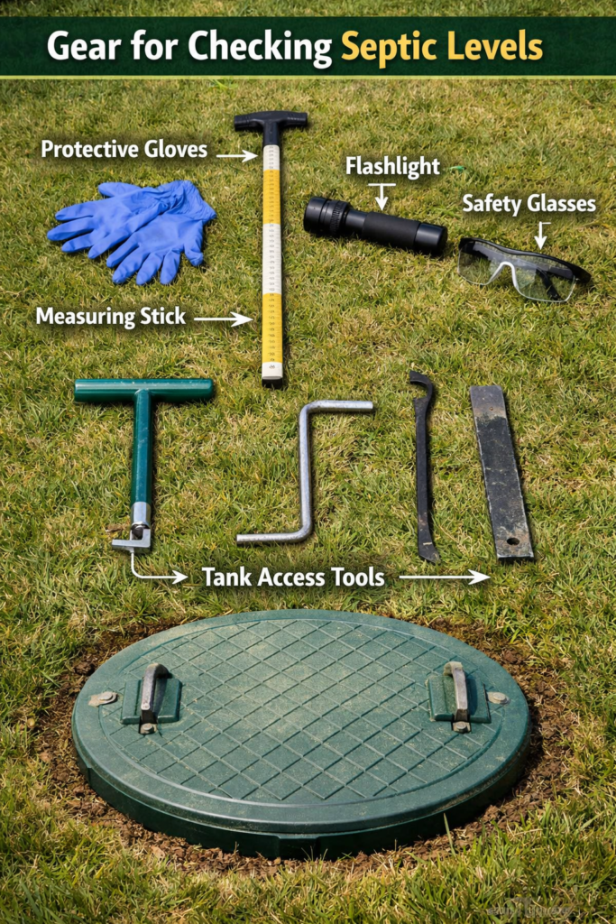 Professional-grade equipment like septic tank level gauges provide more accurate readings. These tools have built-in measurement markings and designed specifically for waste level detection.